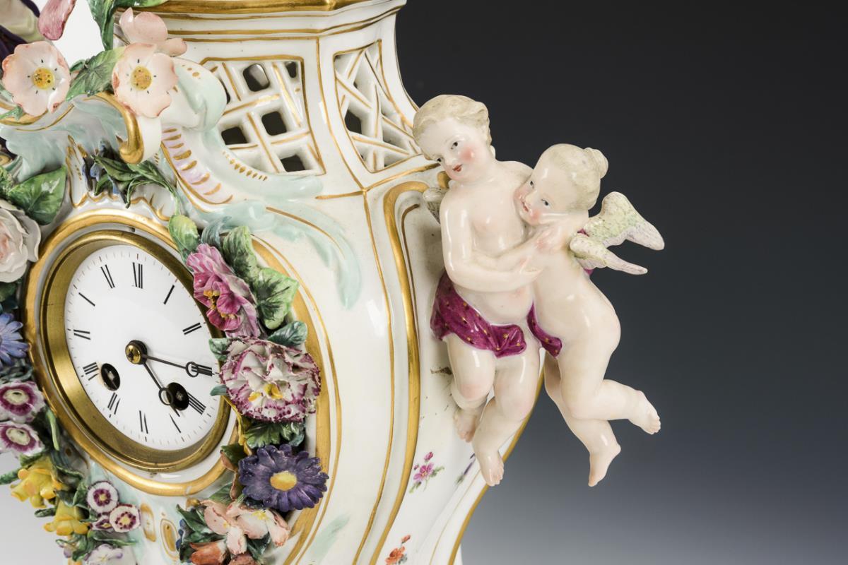 Porzellanuhr mit Hahn. Meissen.