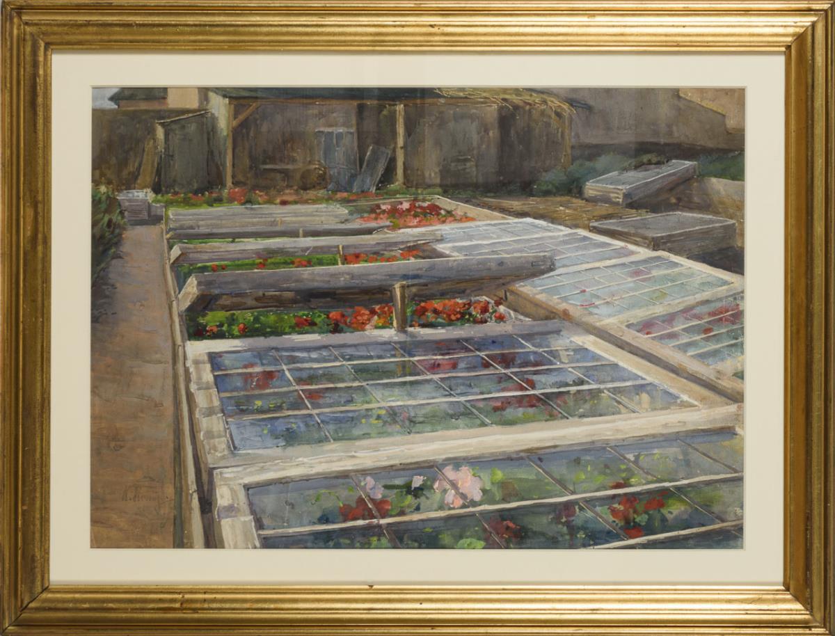 Undeutlich signiert: Frühbeete in der Gärtnerei
