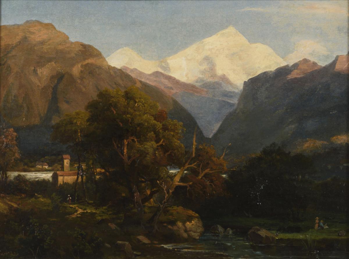 Undeutlich signiert: Alpenlandschaft (Wohl Jungfrauenmassiv)