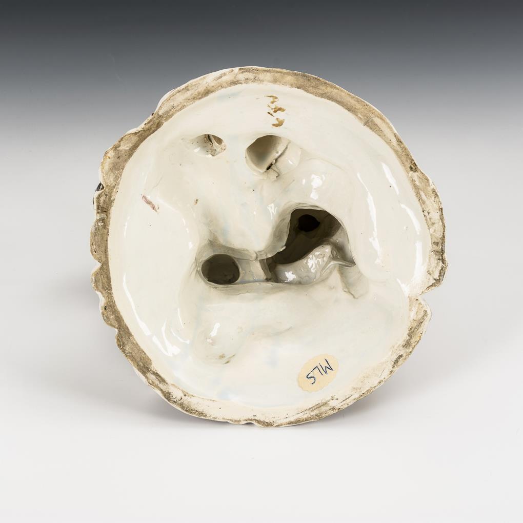 Fayence, weiß glasiert, farbig staffiert. H 22,5 cm.