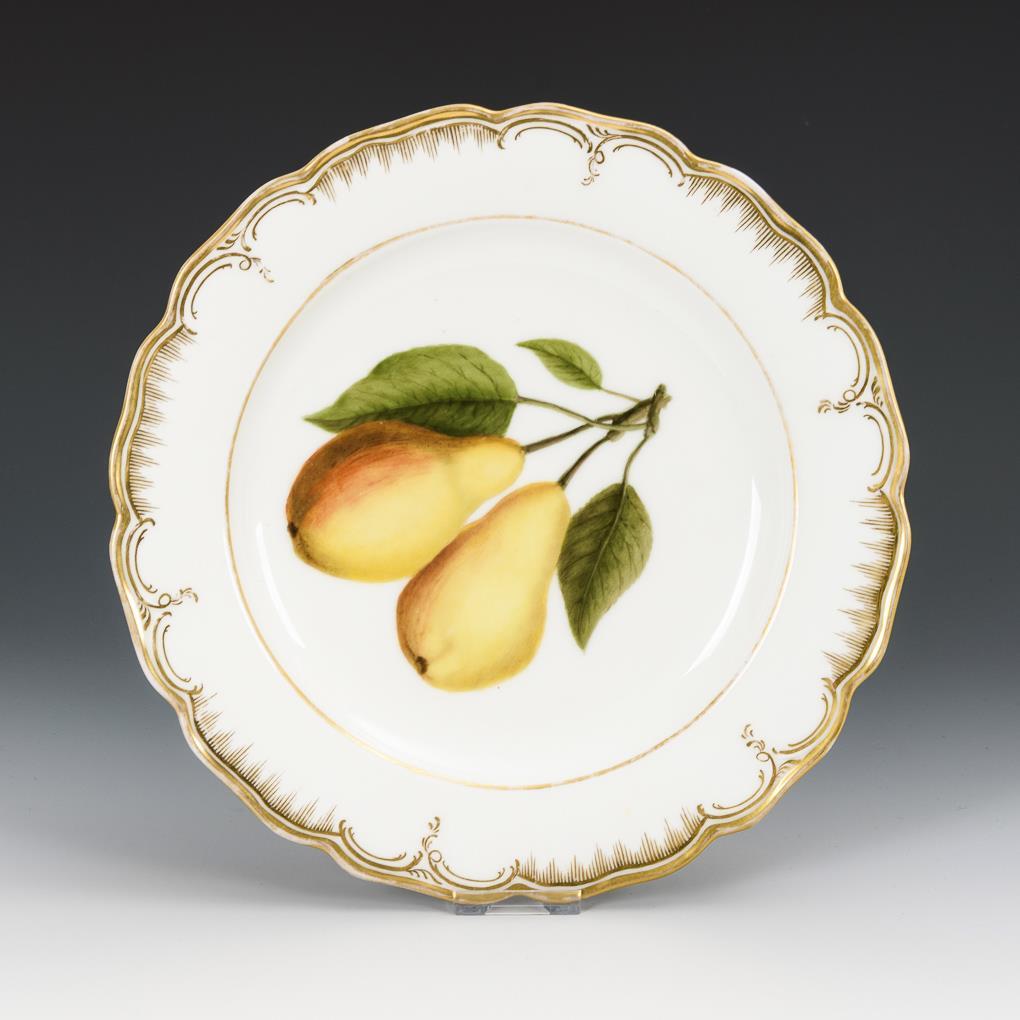 Modell "Neuglatt". Im Spiegel die Malerei eines Zweiges mit zwei Birnen. Gold etwas berieben.