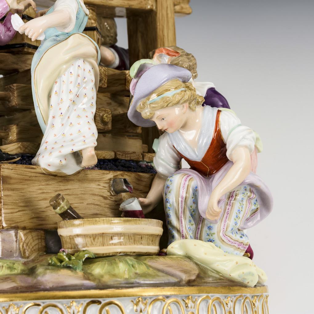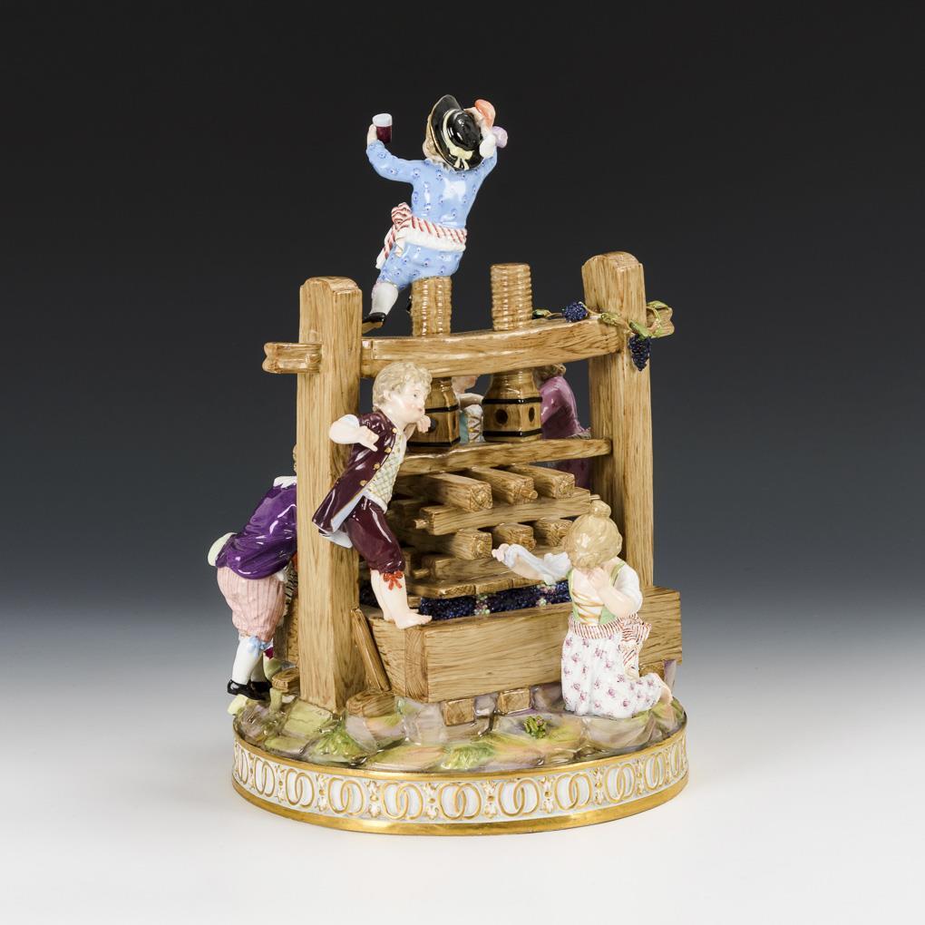 Große Figurengruppe mit 7 Putten an einer Weinpresse. Restauriert.