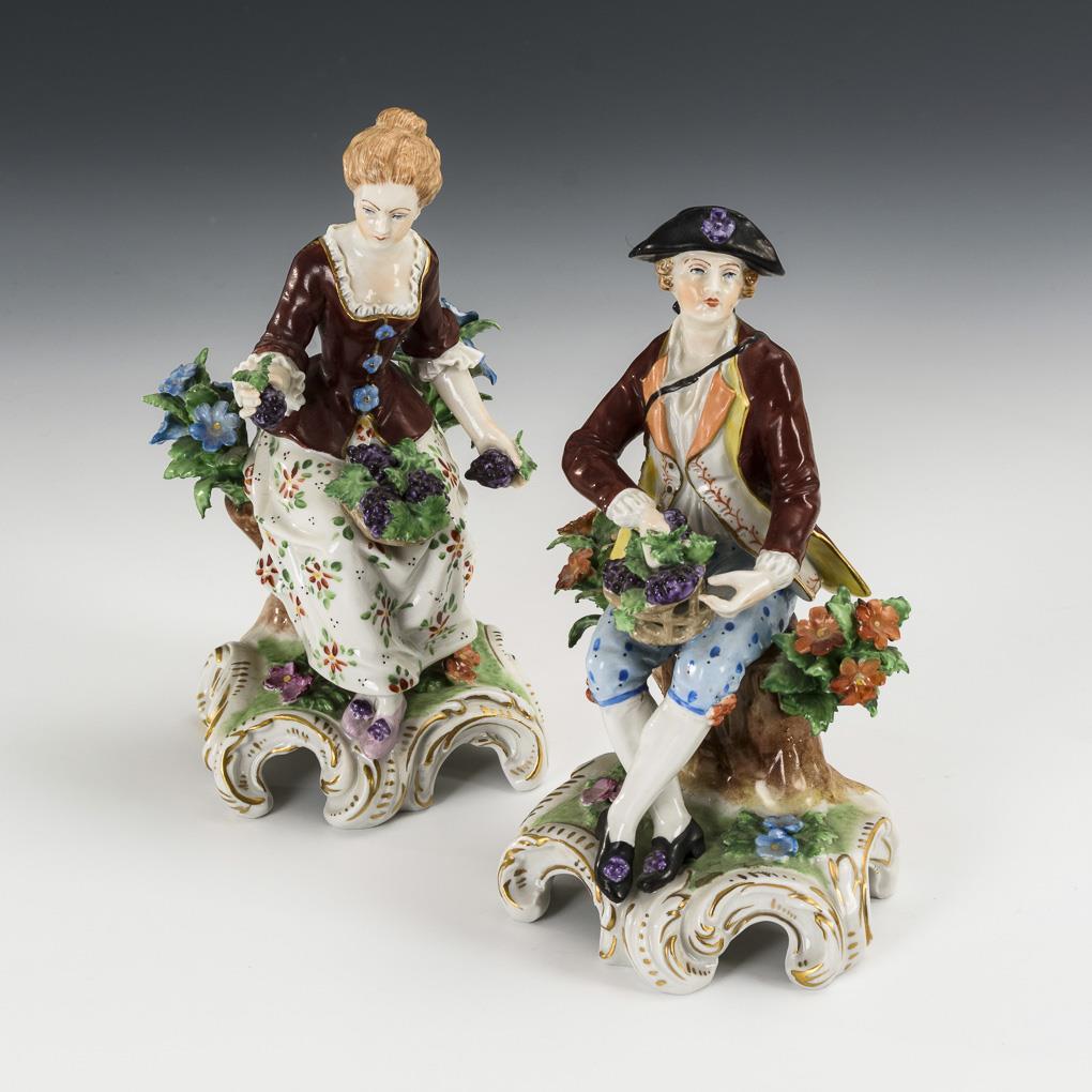 Je auf einem blühenden Baum sitzende Gärtnerin bzw. Gärtner mit traubengefülltem Korb. 1 Blatt bestoßen.