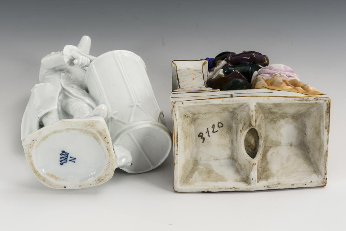 1x Soldat mit Trommel und Flöte. / 1x ein sich umarmendes Renaissancepaar.