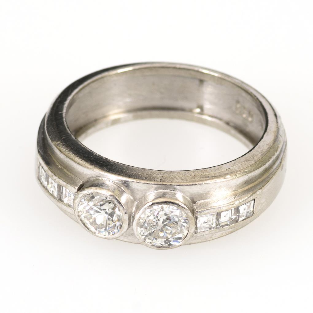 Weißgold 750 gestempelt. Brillanten Ø je ca. 5 mm, Ringgröße 60. 12,3 g.