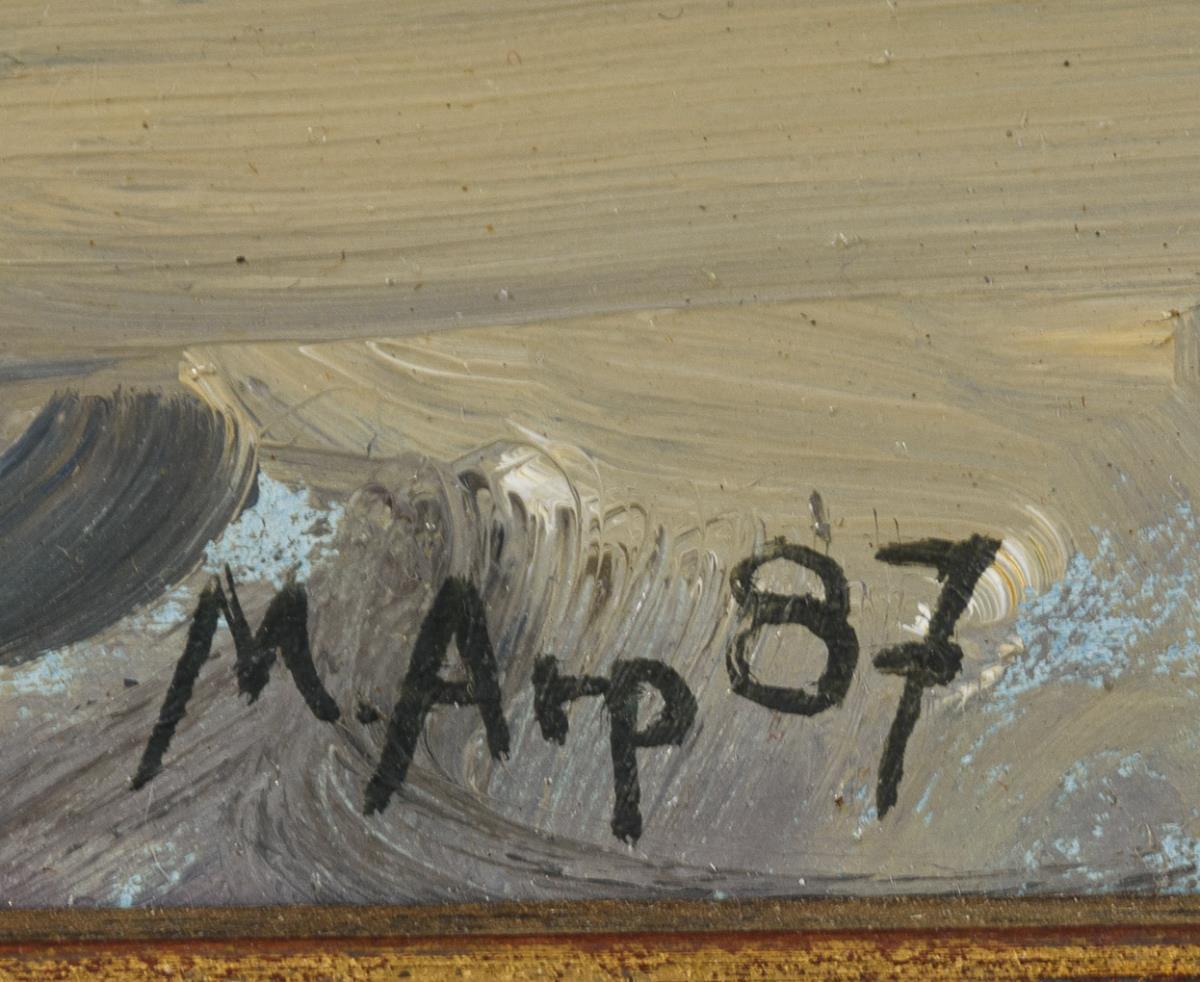 Öl/Malkarton. Rechts unten signiert, verso betitelt. Datiert: (19)87.