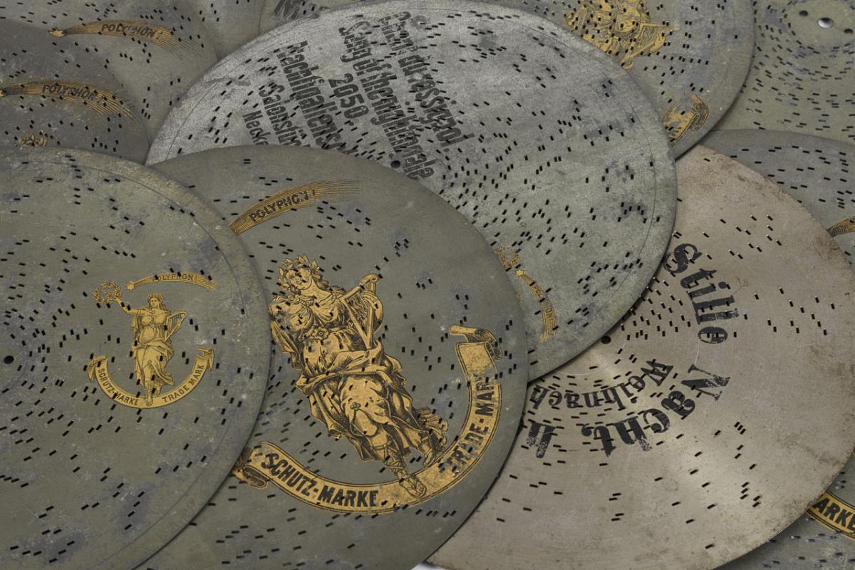 "Polyphon"-Spieldose mit 23 Lochplatten.