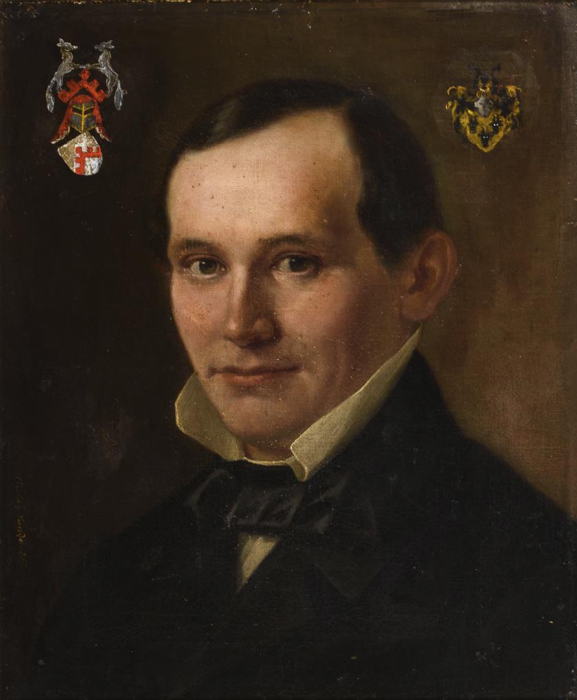 Herrenporträt mit zwei Adelswappen