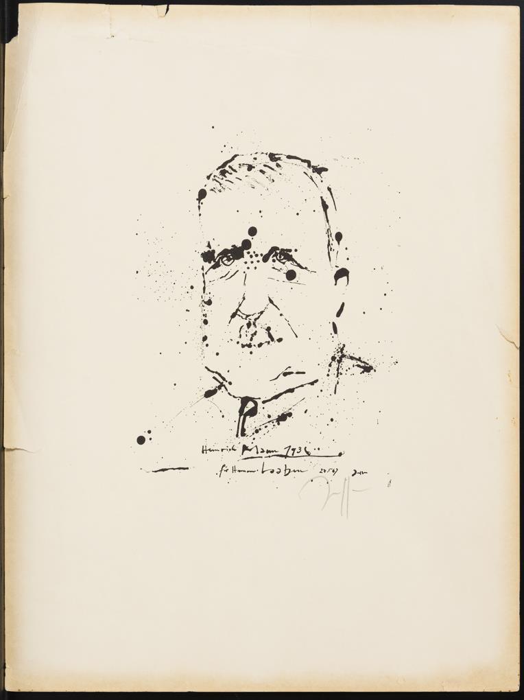 Porträt "Heinrich Mann", Blatt: 37 x 28 cm, Rand mit Lichtschäden, Knicken und Rissen | "Blauer Mohn", Blatt: 42 x 29,5 cm, hinter Glas: 42 x 29,5 cm | "Disperata Desordenado", Blatt: 38 x 27 cm | Abstrakte Landschaft, Platte: 29,5 x 39,5 cm, Blatt: 54 x 76,3 cm, etwas geknickt | Farblithografie mit 3 Schlafenden, bezeichnet "Für Herbert", dazu ein handgeschriebenes Schriftstück (beides auf Papier montiert), mit Rissen und Knicken.