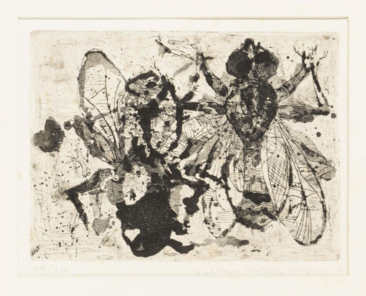 Fliege umgeben von Liebesakten, Platte: 23,5 x 18 cm, Exemplar: 5/30, [19]66 | Fliege, Platte: 14 x 19 cm, Exemplar: 14/30, [19]60.