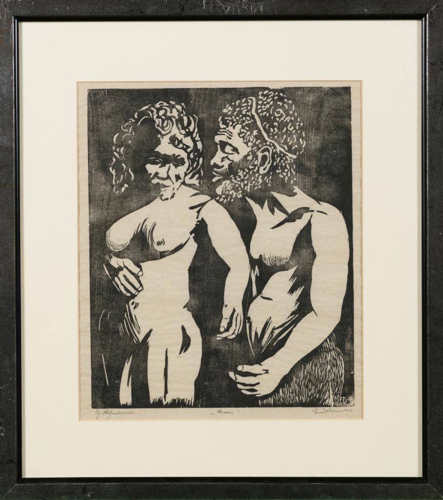 Holzschnitt auf Japanpapier.Bleistiftsignatur, monogrammiert "ED".[19]47.Original-Holzschnitt.