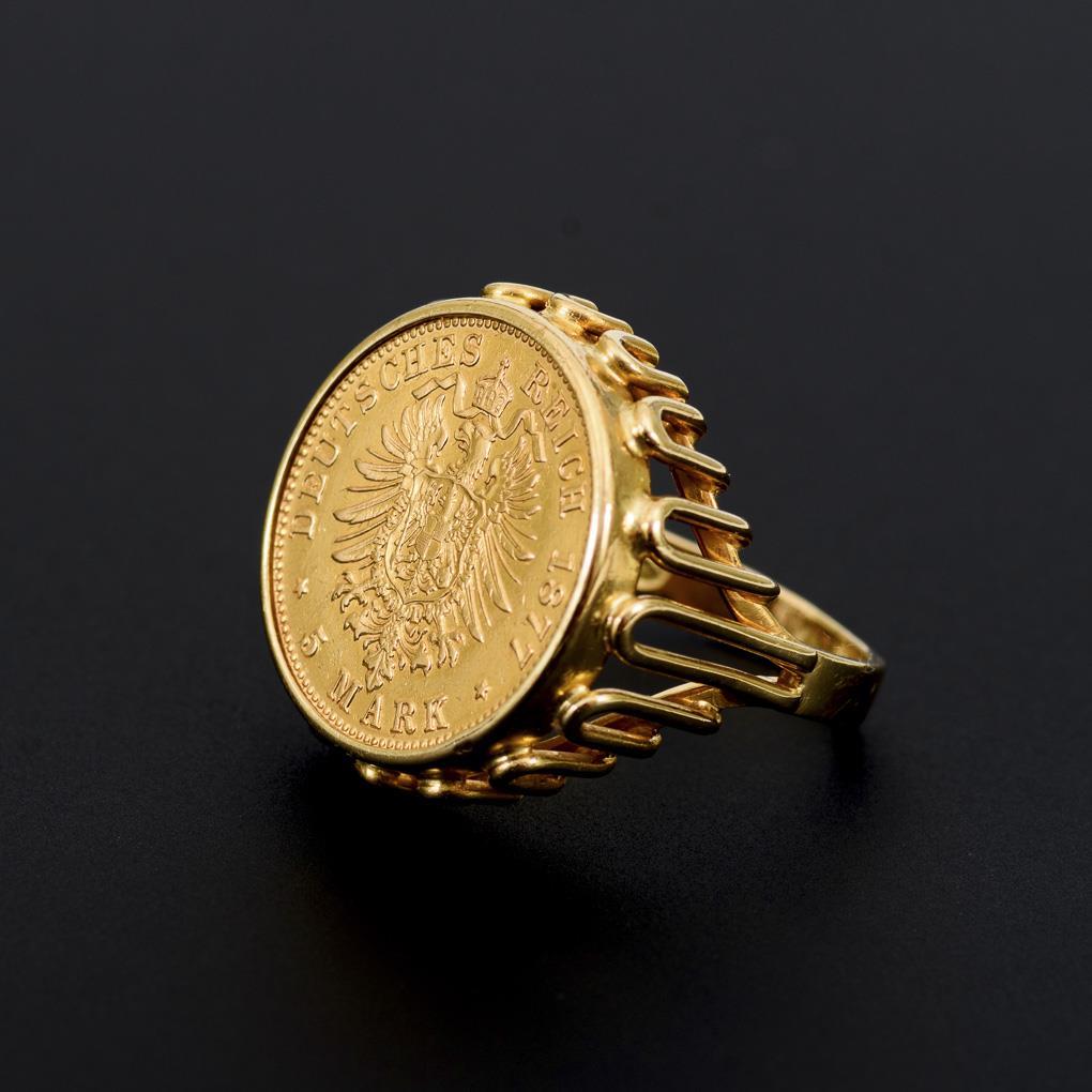 Gelbgold 585 gestempelt, Münzgold 900. Münze Ø 17,0 mm. Ringgröße 51. 6,1 g..