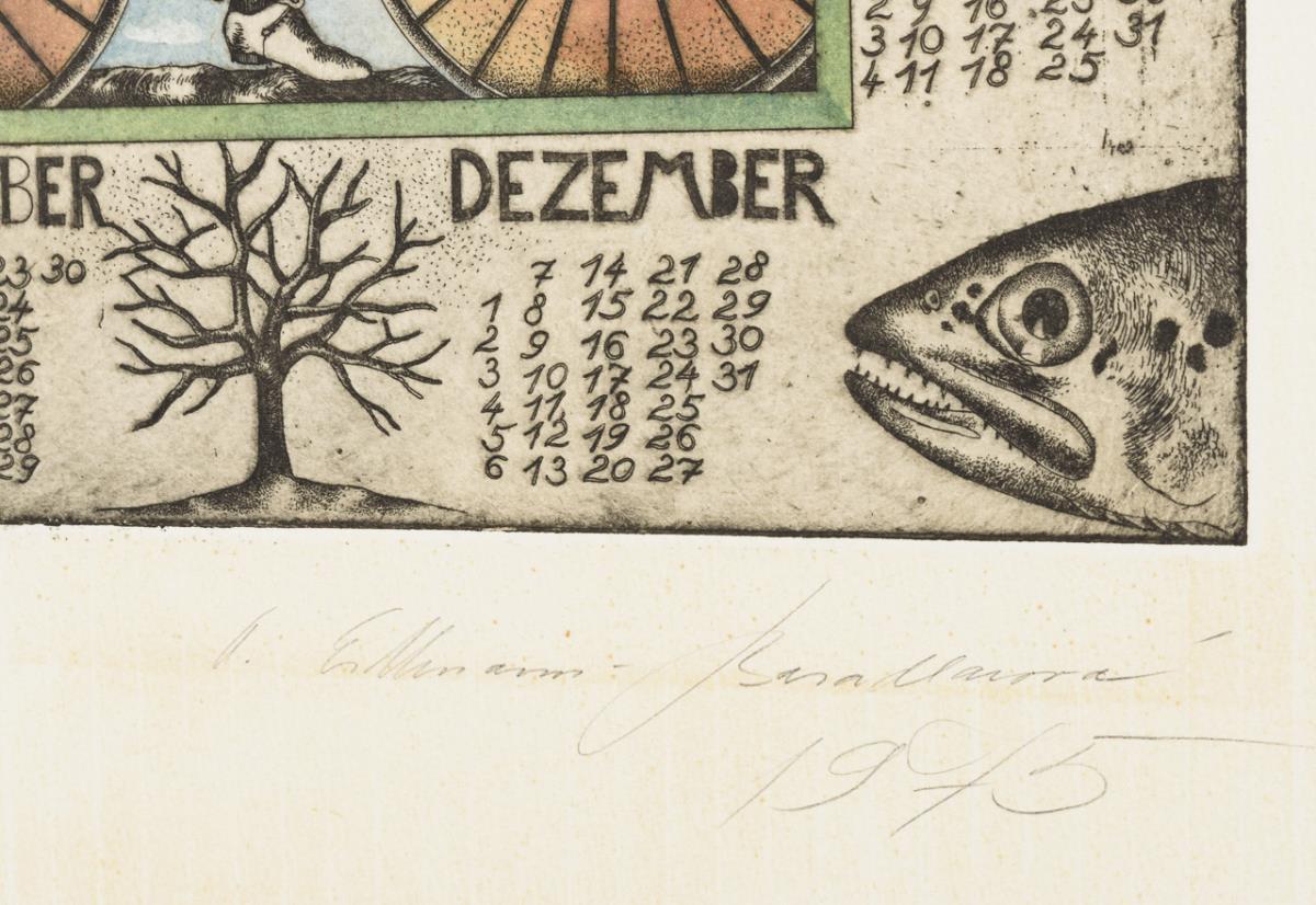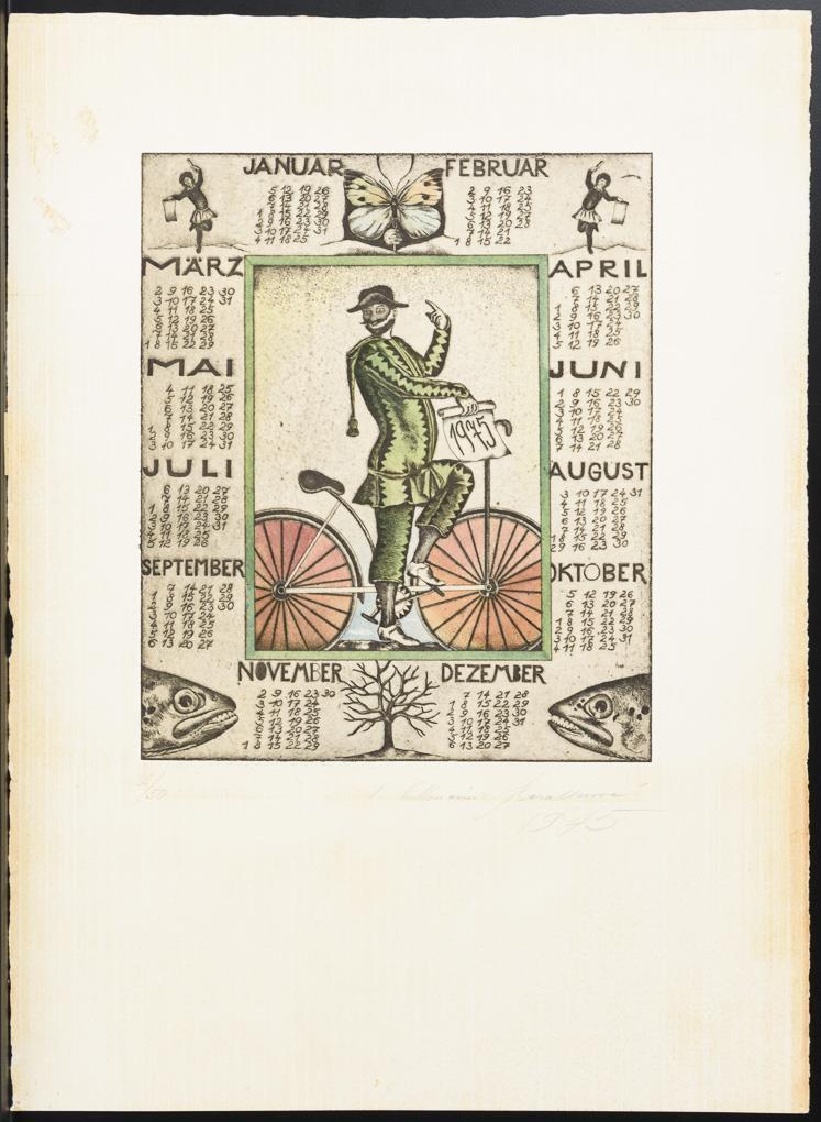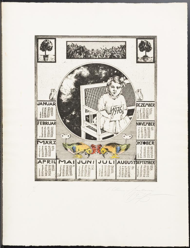 10 verschiedene Werke in niedriger Auflage, darunter Jahreskalender, Stillleben und Personen. Teils mit Lichtschaden, kleinen Knicken und Stockflecken.