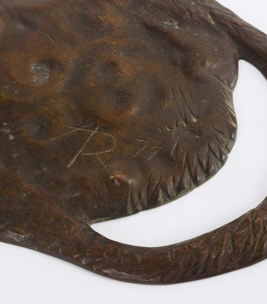 Kupfer bronzefarben patiniert, wohl Galvanoplastik mit Bronze-Plinthe.(19)71 datiert.Monogramm "AR".H 62 cm.