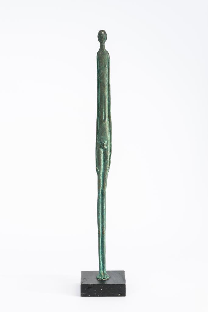 Extrem überlängter Akt eines Knaben mit Frauenfrisur. Plinthe gering berieben.