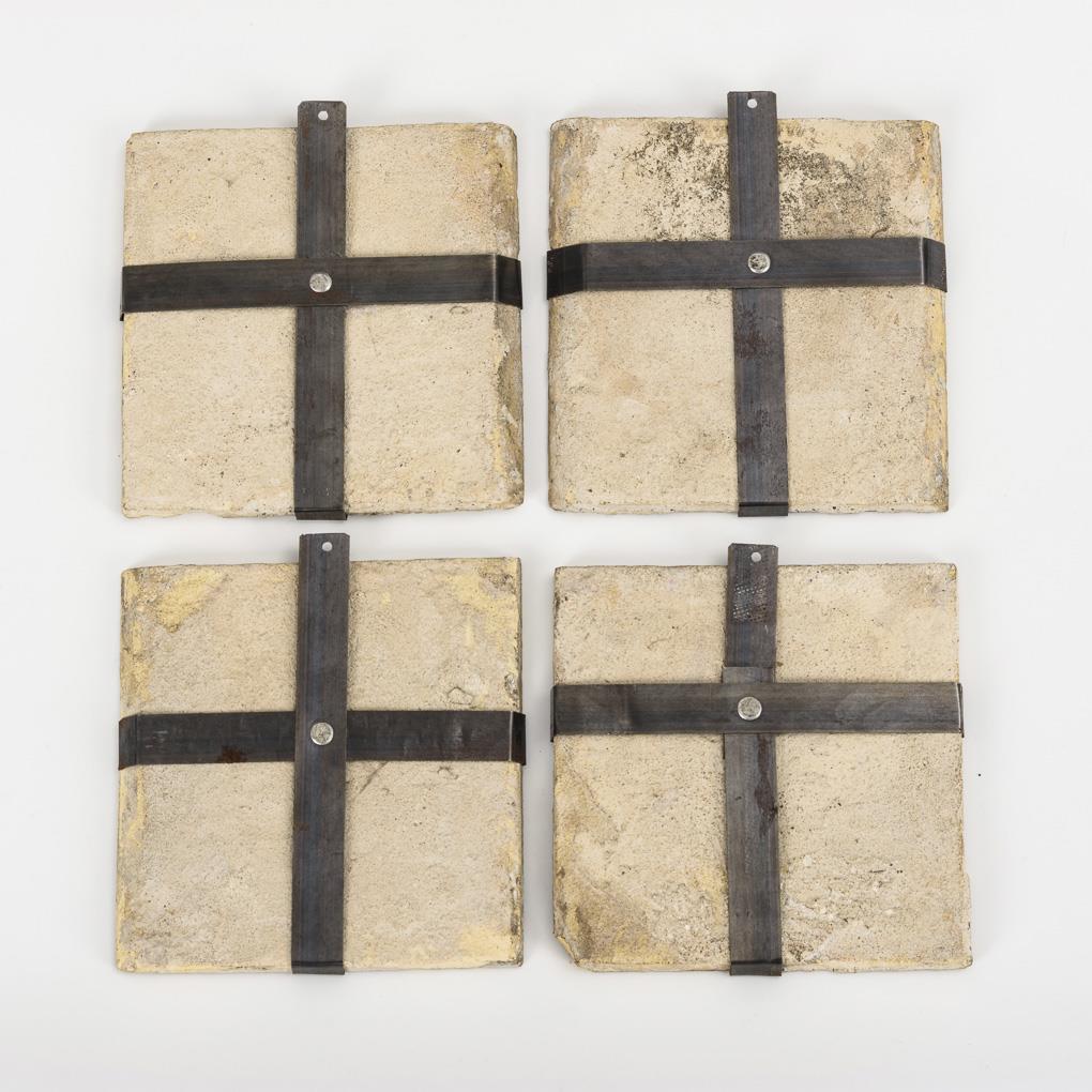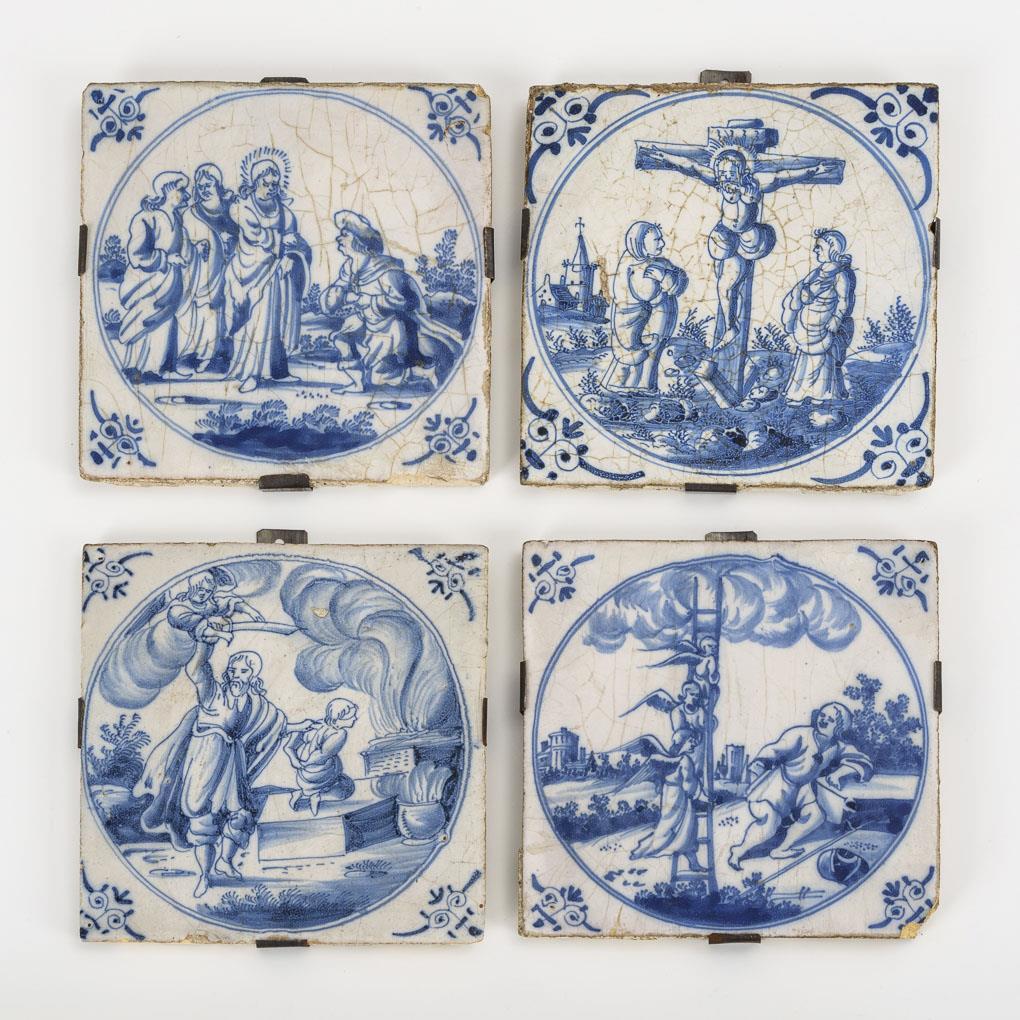4 barocke Fayence-Fliesen mit christlichen Szenen.