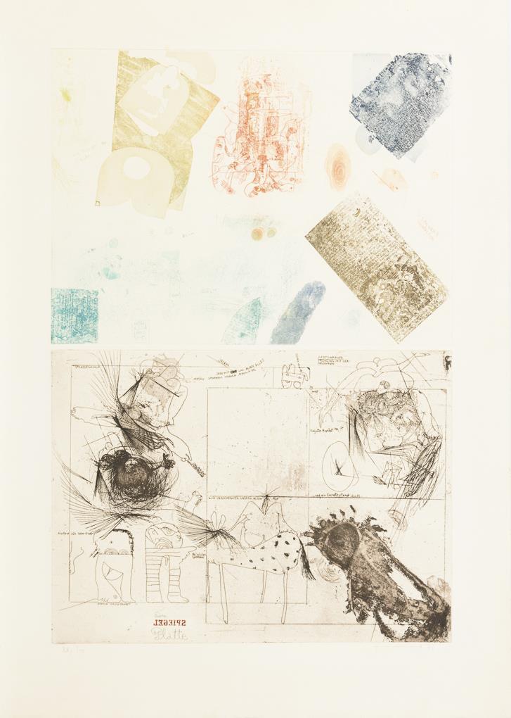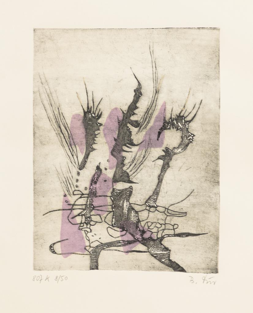 Kurt P. Lohwasser: "Das Apparative", 58,5 x 42 cm, Exemplar: 752 K/16/50, [19]73, Rand mit Lichtschaden und kleineren Wasserflecken | Barlach Heuer: Ohne Titel, 65,5 x 50,5 cm, Exemplar: 911 K/36/50, 1977, leichter Lichtschaden | Undeutlich signiert: Ohne Titel, 77 x 56 cm, Exemplar: 816 K/40/100, Rand mit leichter Verschmutzung | Undeutlich signiert: Ohne Titel, 52,5 x 39 cm, Exemplar: 807 K/8/50, Rand mit leichter Verschmutzung | Undeutlich signiert: "Eine Spiegelplatte", 75,5 x 55 cm, [19]71, Exemplar: 88/150 | Undeutlich signiert: "Odradek", 50 x 66 cm, Exemplar: 24/60, [19]88 | Undeutlich signiert: Rötliche Fläche, 65 x 50 cm, Exemplar: 30/100, etwas geknickt.