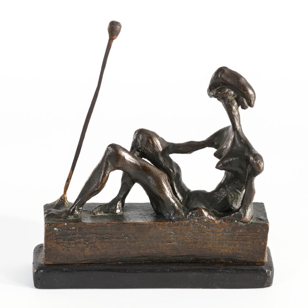 Bronze patiniert, Kupferstab, geschwärzte Holzplinthe.Undeutlich bezeichnet mit Zusatz "P/A".16,5 / 18 cm.