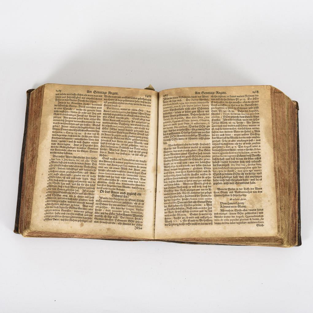 Erklärung religiöser Zitate aus unterschiedlichen Schriften. In deutscher Sprache. (6) Seiten und 1675, 1279 Spalten, (51) Seiten. Ledereinband. Titel und Teile des Vorwortes fehlen. Stärkere Alters- und Gebrauchsspuren.