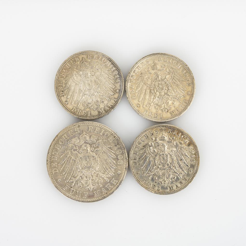 5 Mark 1906 / 3x 3 Mark von 1909, 1912 und 1914. Zustand sehr schön-vorzüglich.