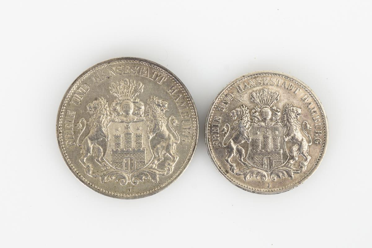 5 Mark, "Freie und Hansestadt Hamburg", 1913. / 3 Mark "Freie und Hansestadt Hamburg" 1909. Zustand: vorzüglich.