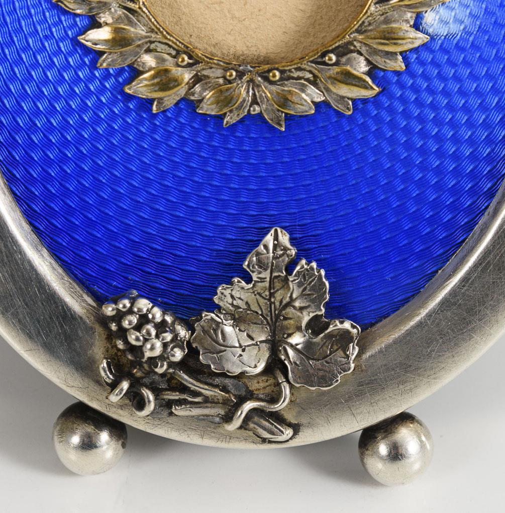 Silber, partiell vergoldet und blaues Transluzidemail. 13 x 9,5 cm.