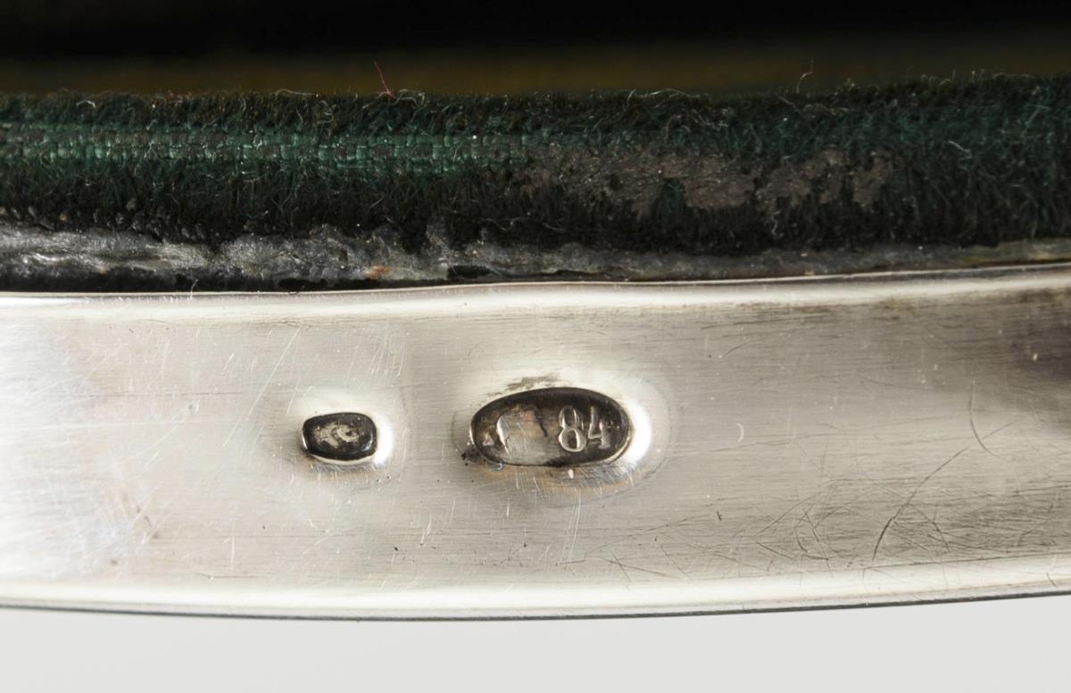 Kyrillisches Meisterzeichen/Kokoschnikmarke/84 Zolotniki gepunzt. Ab 1908. Moskau.