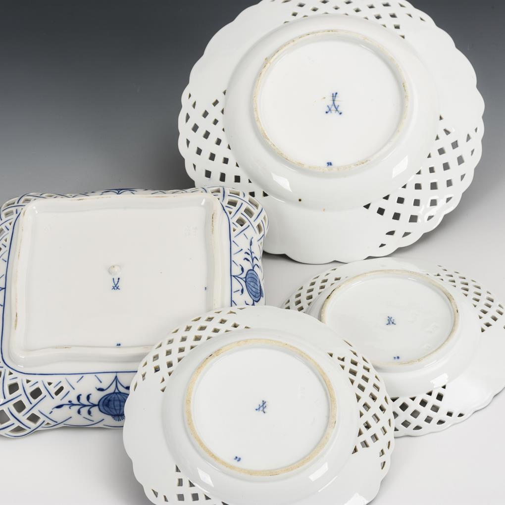 Form "Neuer Ausschnitt". 1 + 2 Durchbruchteller (Ø 1x 20,5 cm und 2x 15 cm) und 1 Quadratschale (18,5 x 18,5 cm).
