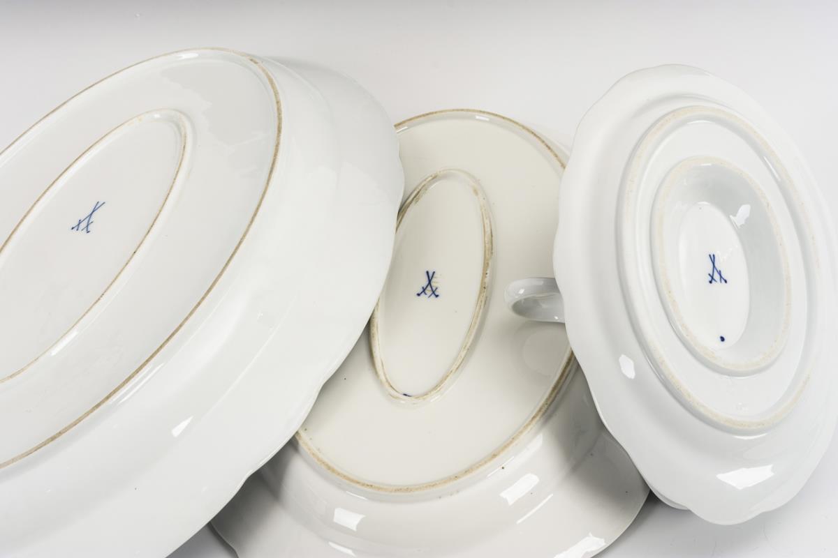 Form "Neuer Ausschnitt". 2 Ovalplatten (L 41 und 48 cm) und 1 Sauciere (L 26 cm).