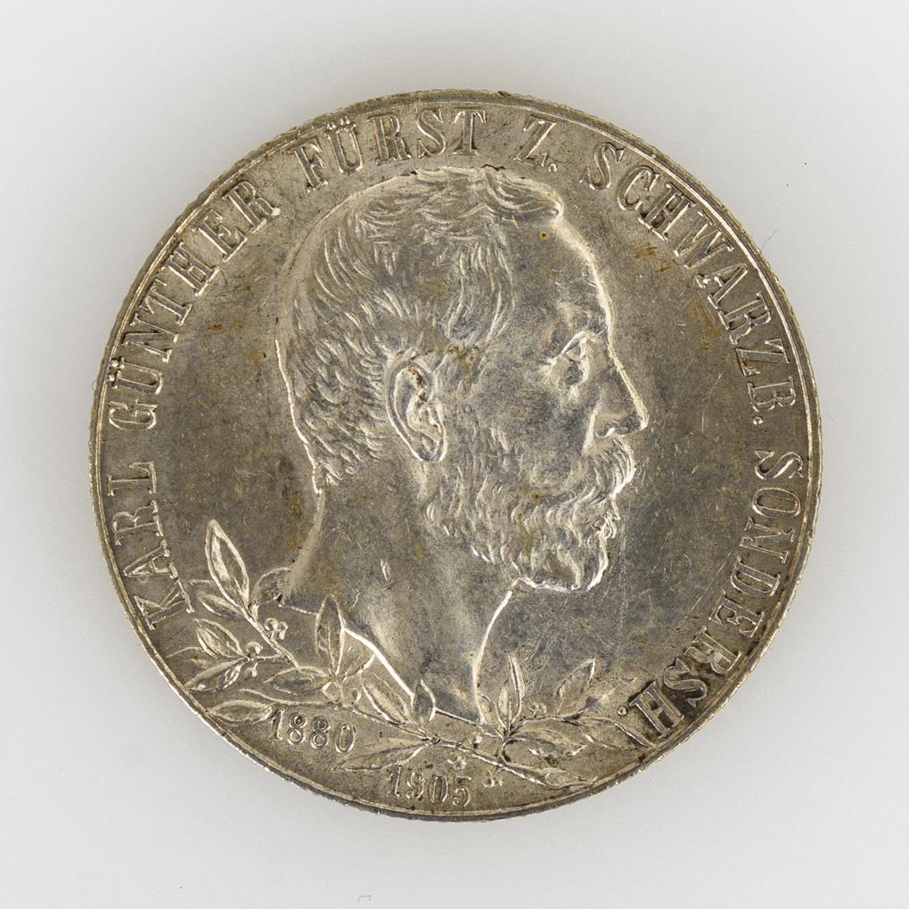 "Karl Günther Fürst z. Schwarzb. Sondersh", 1905, zum 25jährigen Jubiläum. Zustand: vorzüglich.