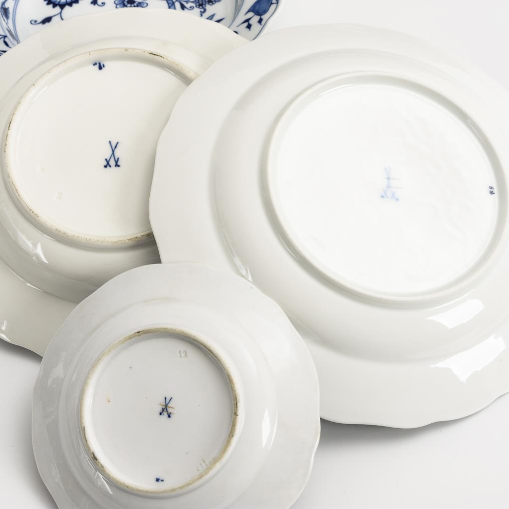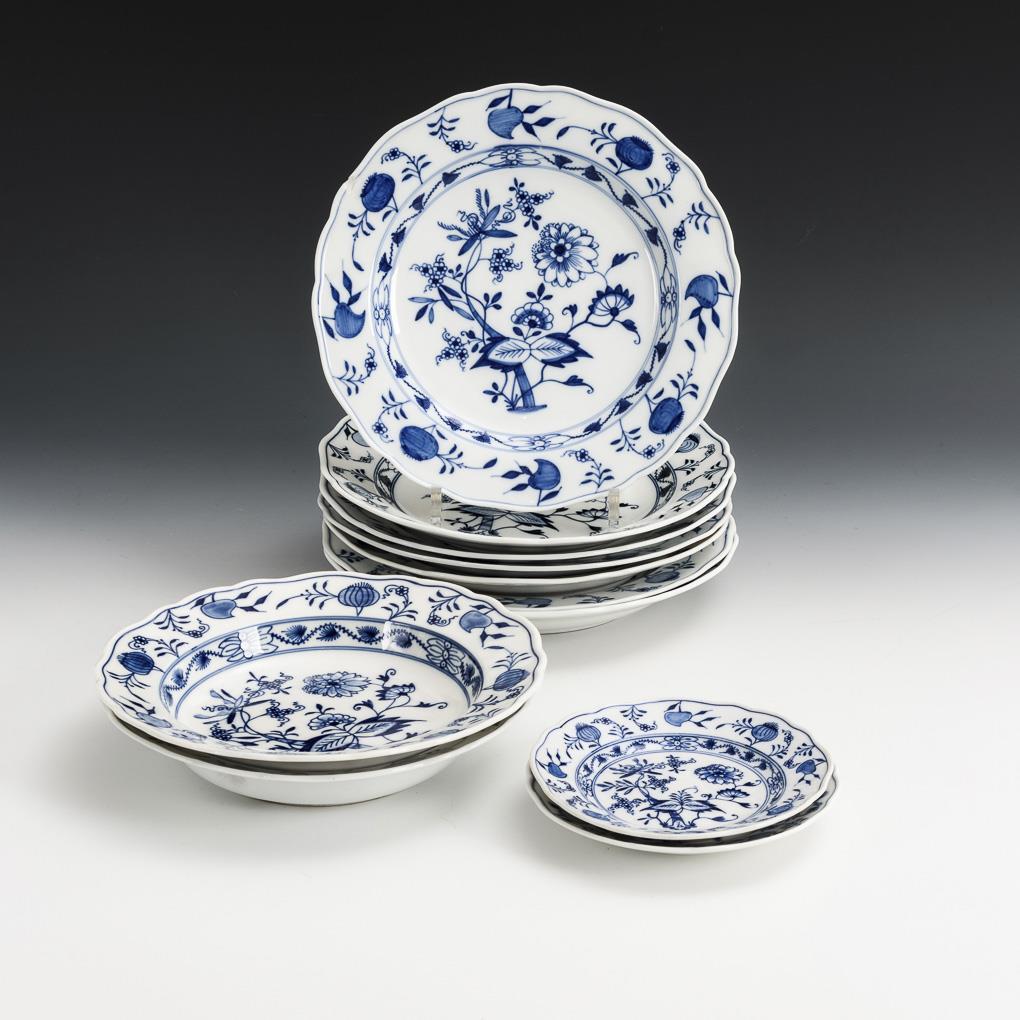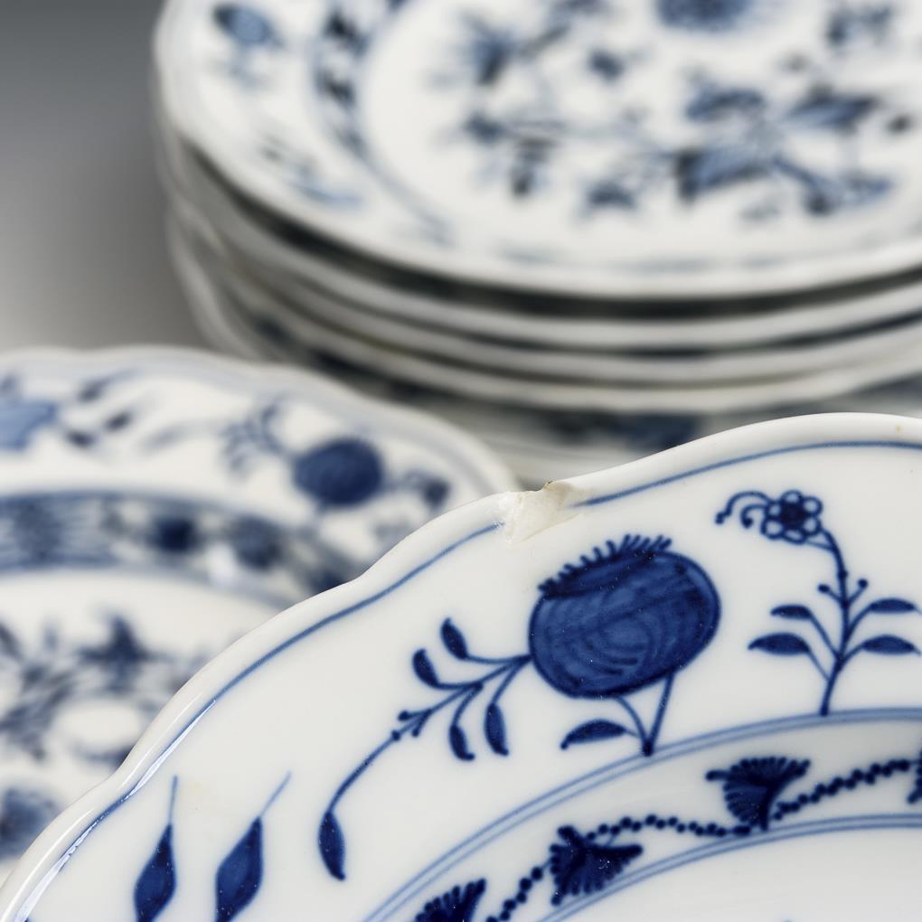 7 + 2 + 2 Zwiebelmuster-Teller. Meissen.