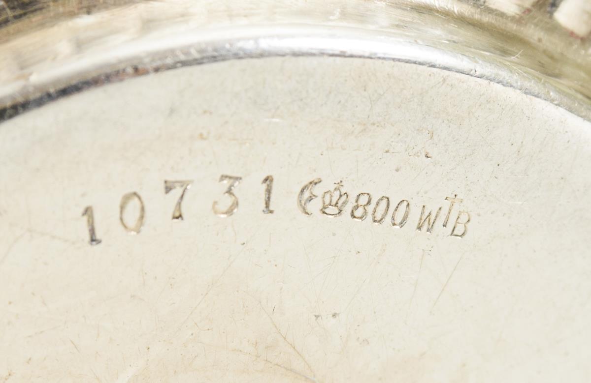 Milchkännchen und Schälchen mit Rippenzier. Konischer Becher mit Monogrammgravur "A", innen vergoldet. Teils gedellt.