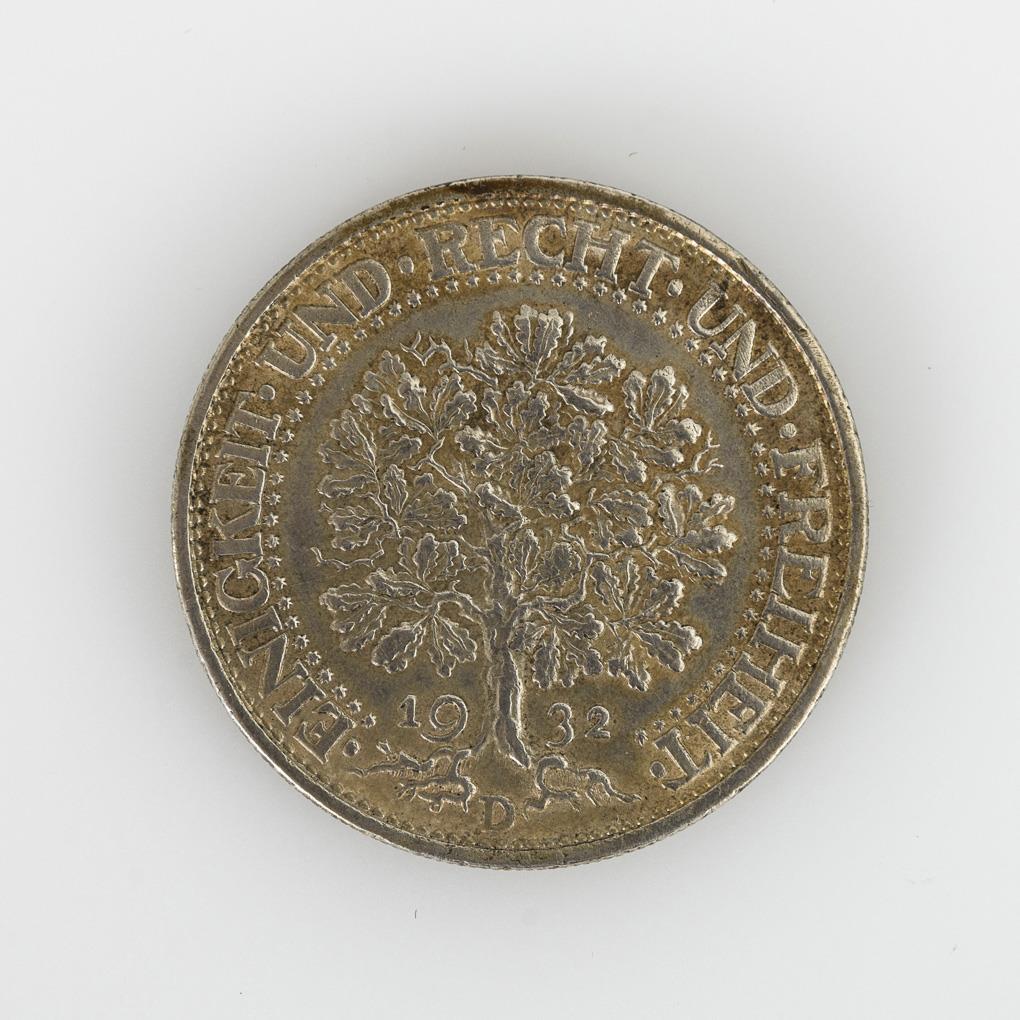 5 Reichsmark "Einigkeit und Recht und Freiheit".