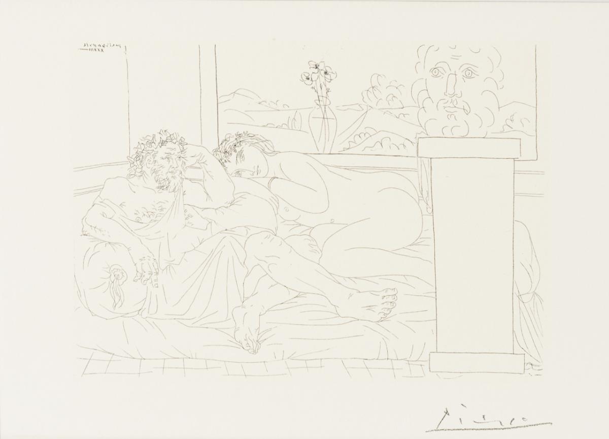 Lithografie. Prägestempel "Plitt", verso Stempel "Pablo Picasso Suite Vollard Bloch Nr. 174, VG Bildkunst Bonn 1990". 1 von 300 Exemplaren.