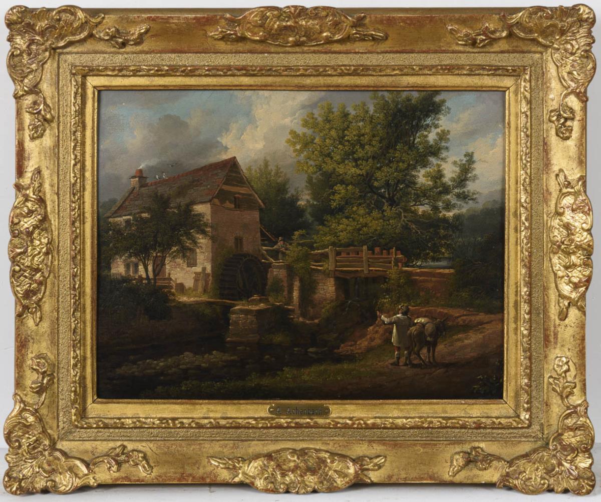 Öl/Holz. Unsigniert, auf Rahmenschild als "A. Achenbach" bezeichnet. 2. H. 19. Jh.