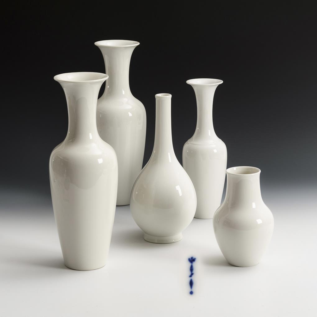 2 +1 Balustervasen mit Kraterhals (H 2x 34,5 cm und 1x 28 cm), Birnvase (H 28,5 cm) und kleine Balustervase (H 17cm).