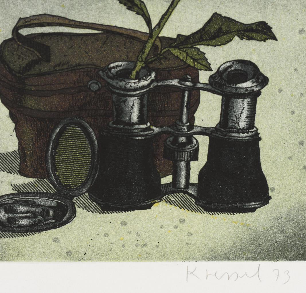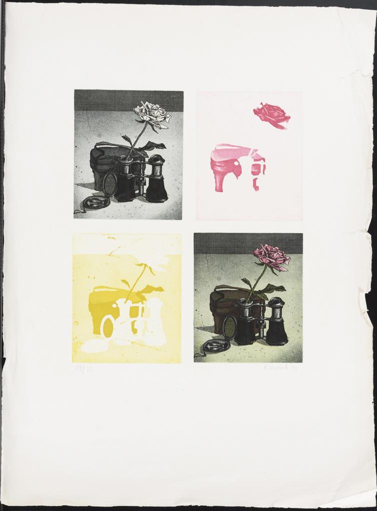 4 Radierungen auf einem Blatt: Platte schwarz, rot und gelb sowie alle zusammen. Bleistiftsignatur. [19]73. Exemplar: 29/70.