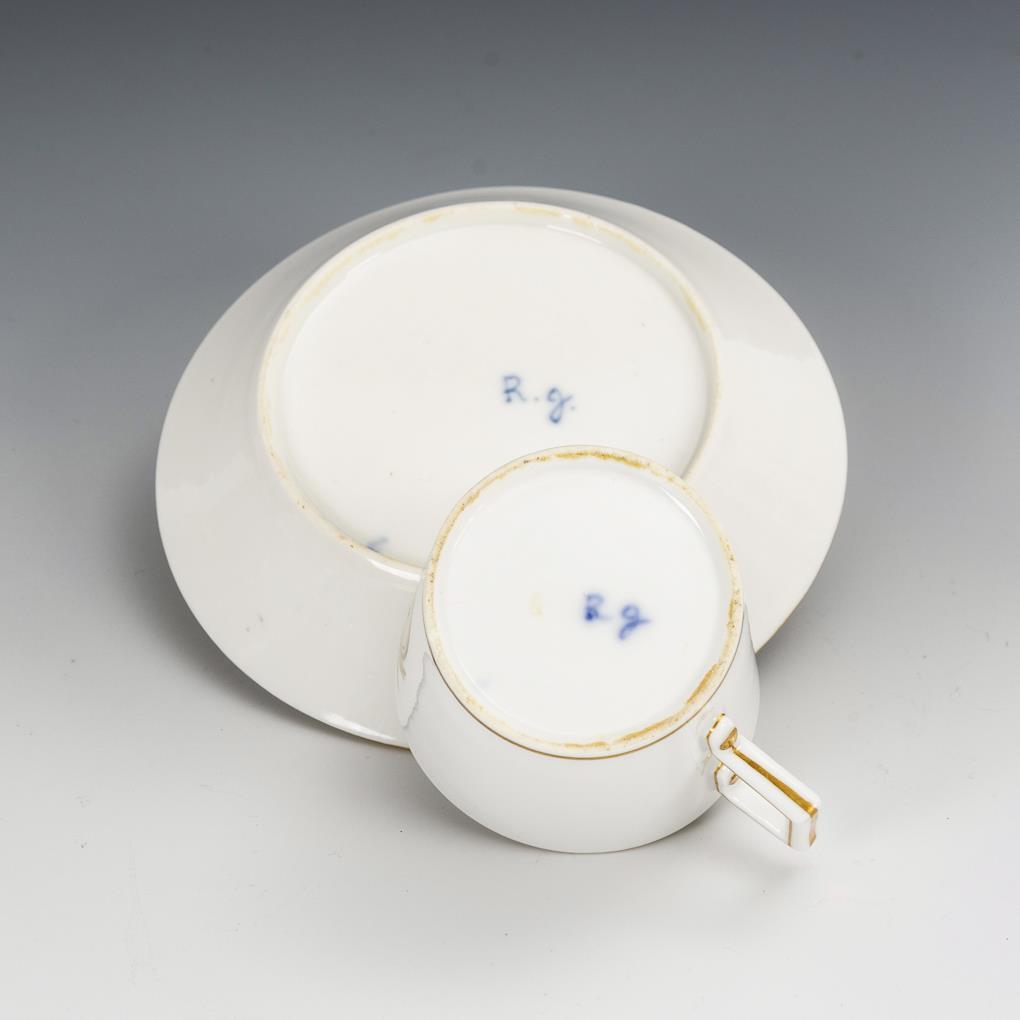 Grisaillemalerei, Goldstaffage. H Tasse 6 cm, Ø Untertasse 13 cm.