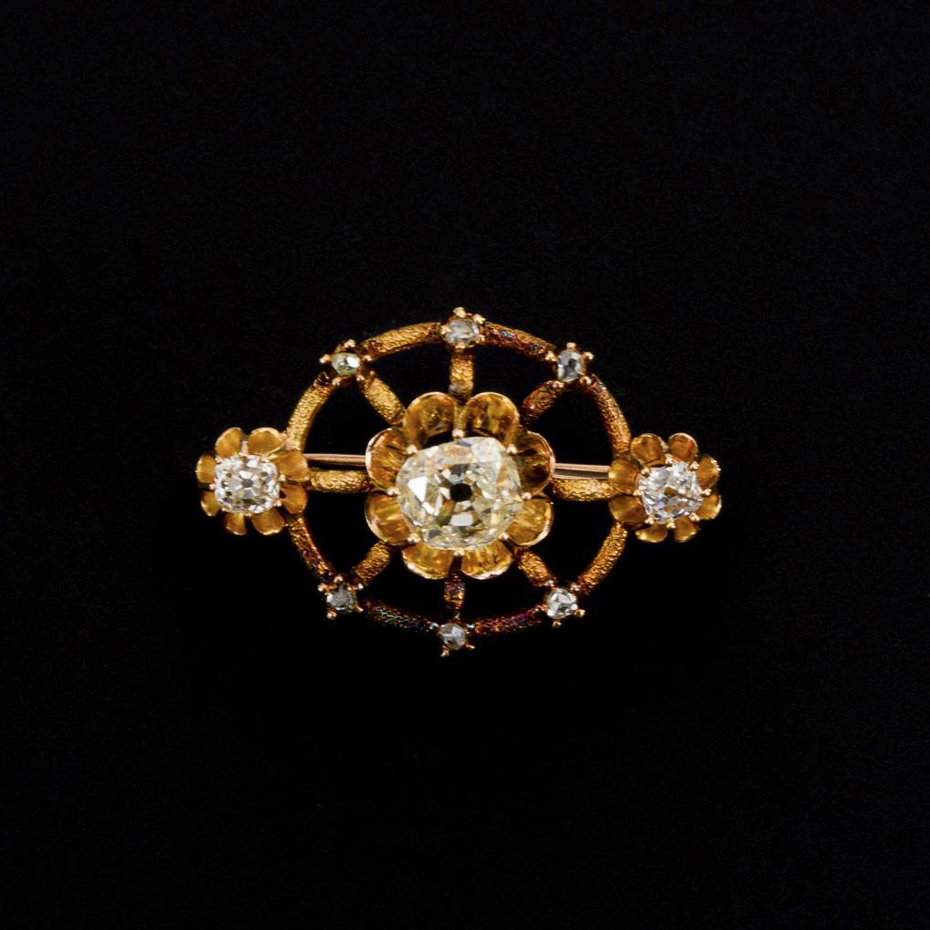 Antike Brosche mit Altschliff-Diamanten und Diamantrosen 2.H.19.Jh.