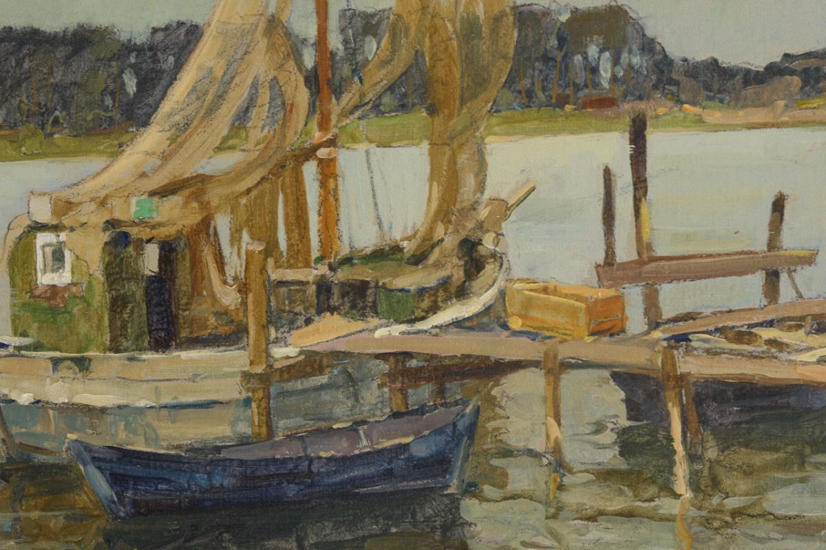 Die Boote an den Stegen mit Blick hinüber zum anderen Ufer.