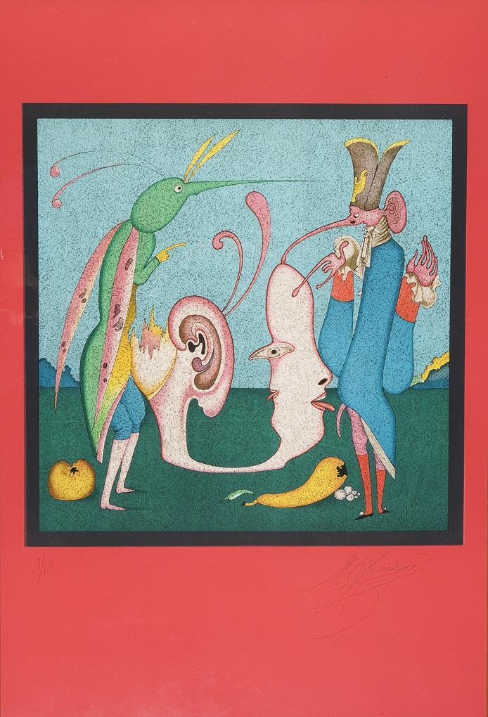 Chemiakin (Shemyakin), russischer Maler, Aquarellist, Grafiker, Bühnenbildner, Bildhauer und Illustrator. Studierte an der Akademie in Sankt Petersburg. Seit 1971 wechselnd in Paris und New York tätig. Ab 1989 in Moskau und Sankt Petersburg, aktuell wieder in Paris ansässig * Partnerauktion Bergmann.