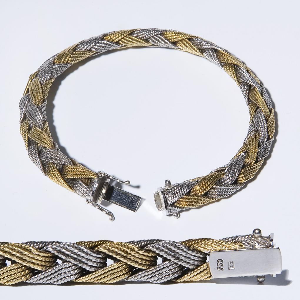 750er Gelbgold-Weißgold (18 ct). Länge: 20 cm. 54,4 Gramm.