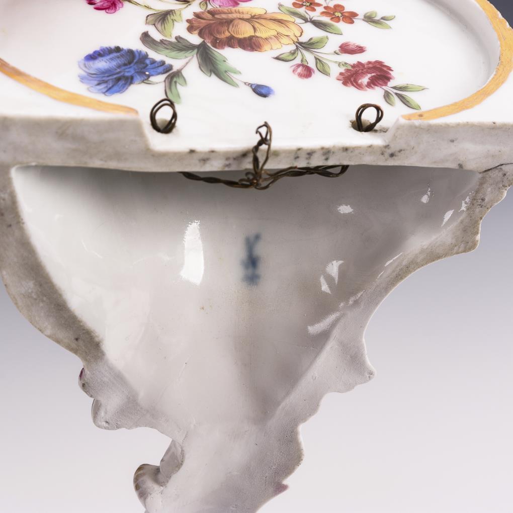 Rocaillekonsole mit Watteaumalerei. Rocailleende restauriert.