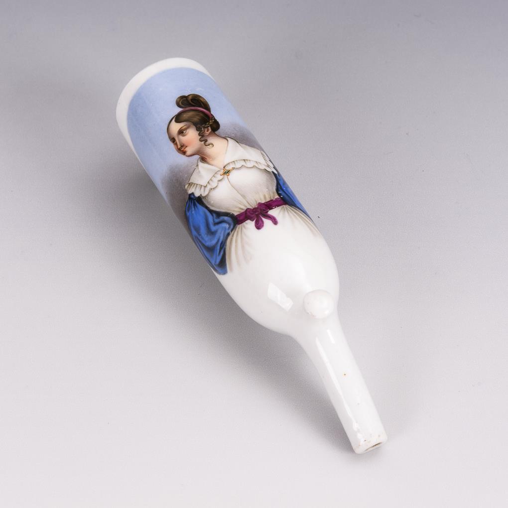 Biedermeier-Pfeifenkopf mit Damenporträt.