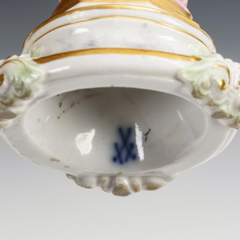 Polychrom bemalt, goldstaffiert. H 18 cm.