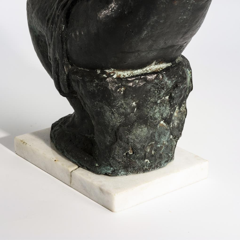 Bronze patiniert, weiße Marmor-Plinthe. Undeutlich bezeichnet.