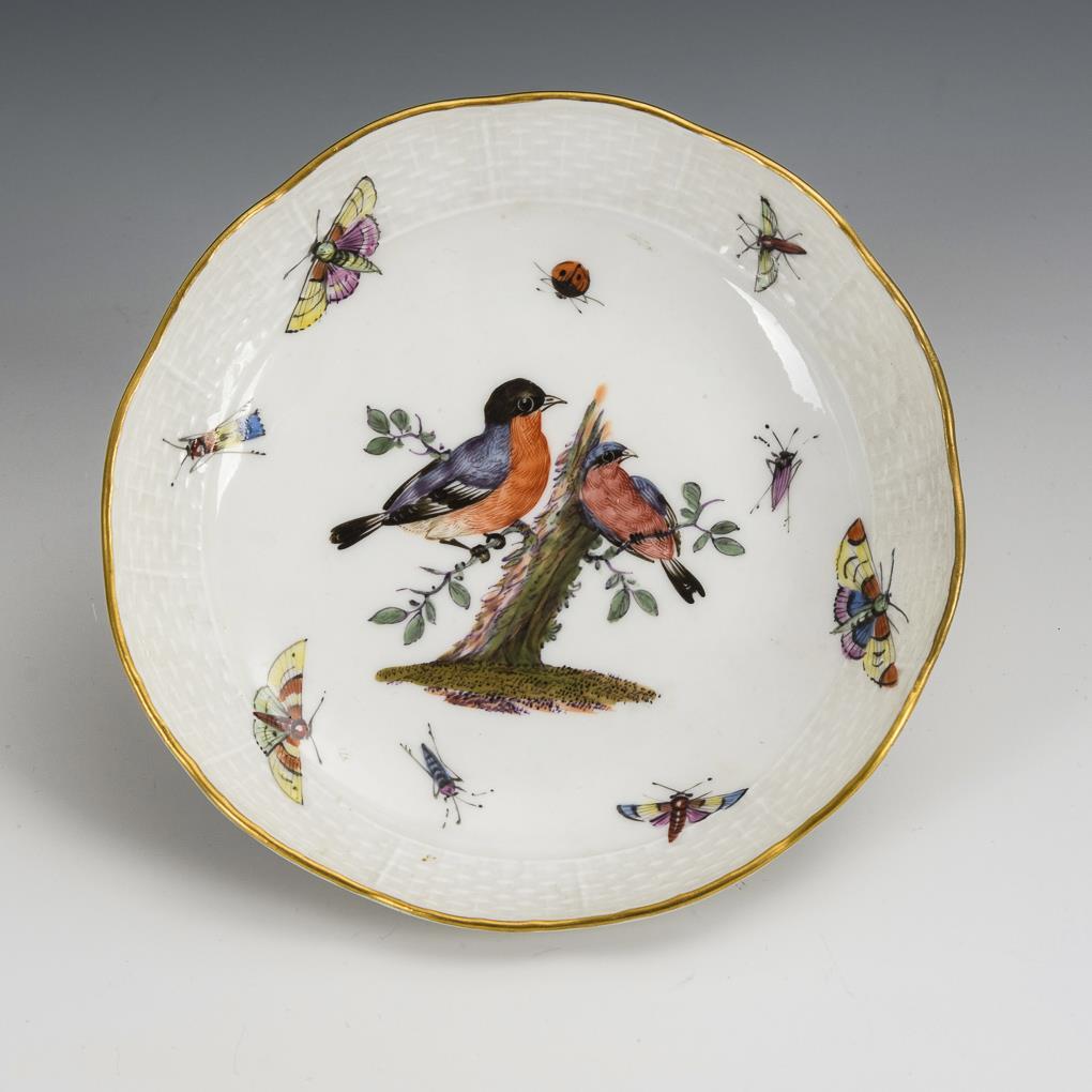 Form "Altozier". Im Spiegel Vogel- und Insektenmalerei. Rand restauriert.