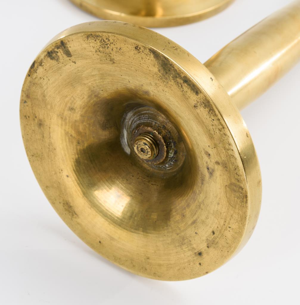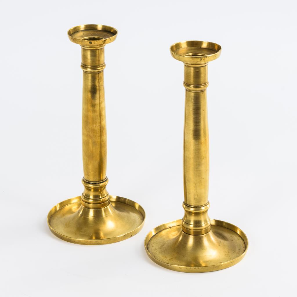 Schlichte Leuchter mit Schalenfuß und Säulenschaft. Geringe Alters-/Gebrauchsspuren.