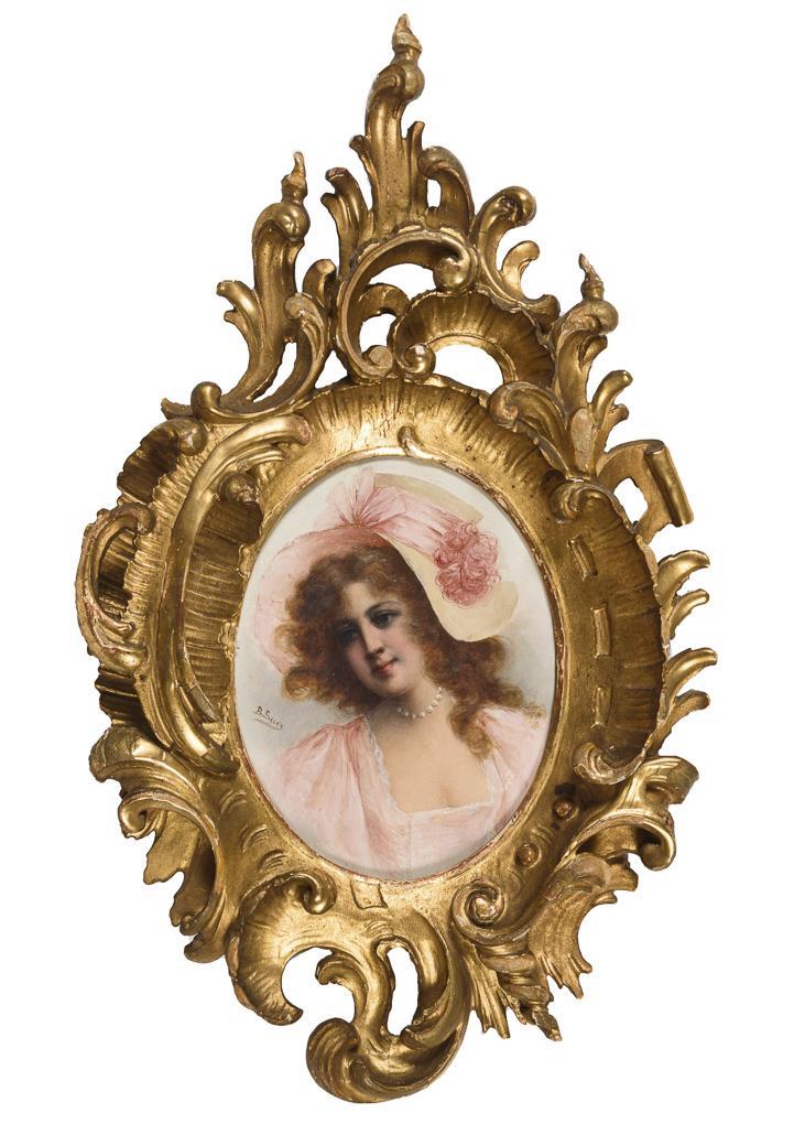 Hübsche Dame in geschnitztem Rocaillenrahmen