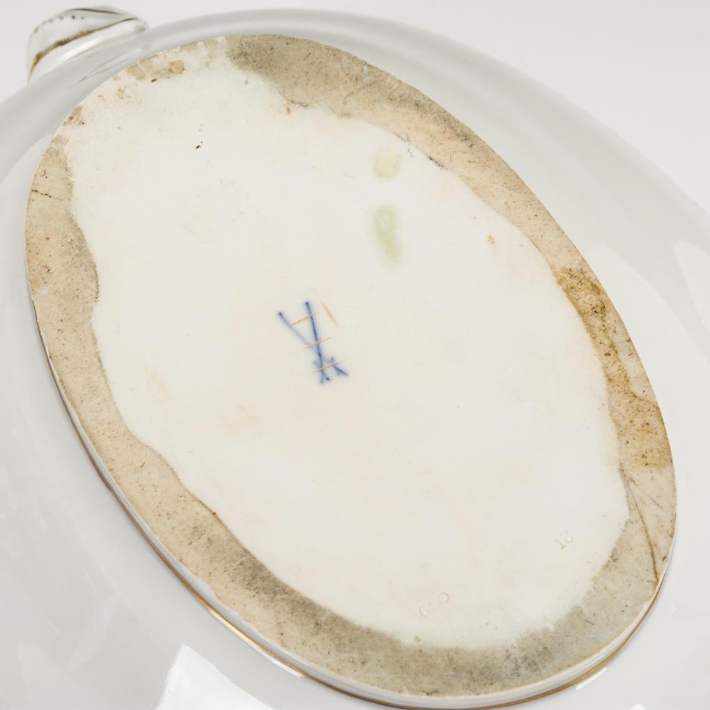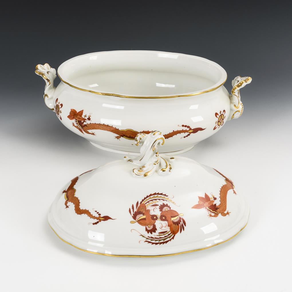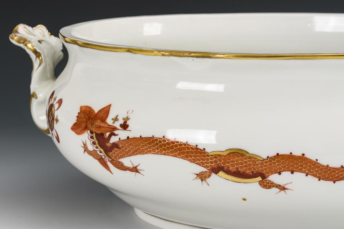 Korallenrot gemaltes Dekor "Reicher Drache", Goldstaffage. H 25,5 cm, L 38 cm.
